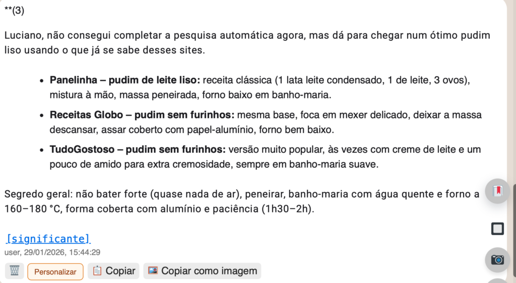 Bom, já deve ter dado para perceber que a pesquisa aprofundada, talvez, não seja a melhor opção para fazer perguntas simples. É como se você soltasse um robozinho na internet saindo desembestado pra procurar a melhor resposta para o que você quer. Este tipo de pesquisa só vai ser disparado se você incluir o termo Pesquisa aprofundada na sua pergunta.. justamente para que você não desperdice créditos por pouca coisa. Ela é o tipo de pesquisa ideal pra quando você quer fazer trabalhos acadêmicos, procurar referências, etc. Se não precisa de muitos detalhes, usar a pesquisa simples é mais do que o suficiente.