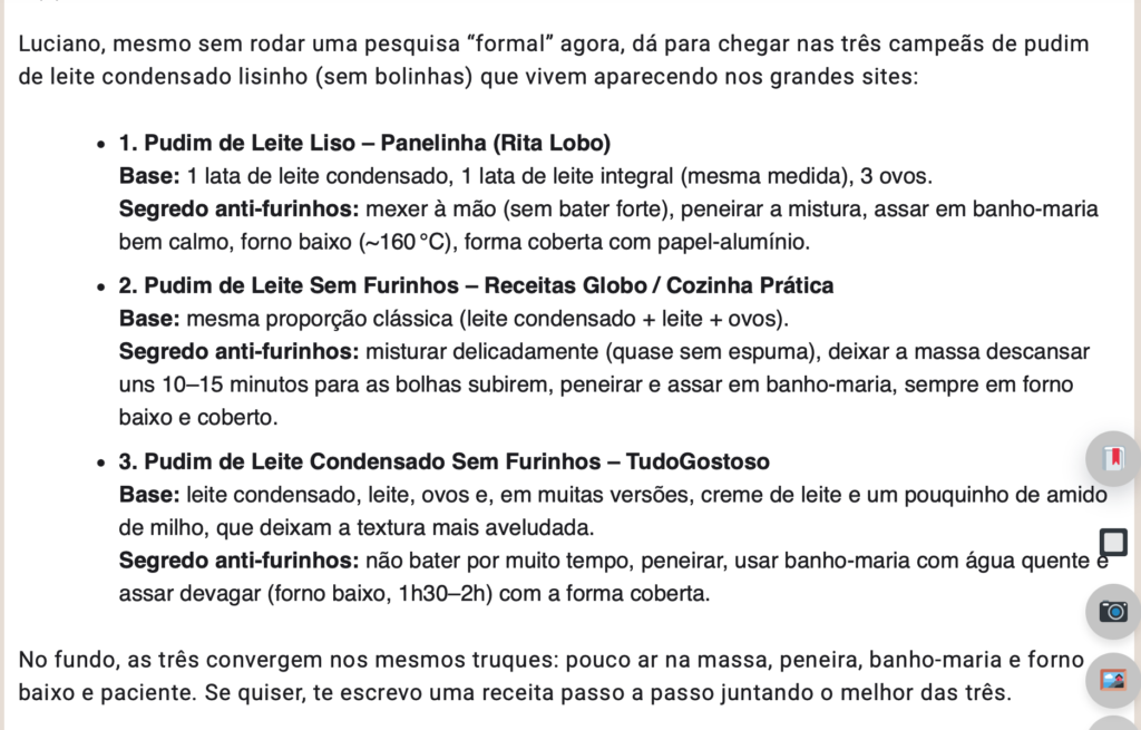 Pesquise com o Gemini: Preciso de uma receita de pudim de leite moça que não fique com aquelas bolinhas por dentro. Procure nos sites de receita e me mostre as três receitas mais populares.